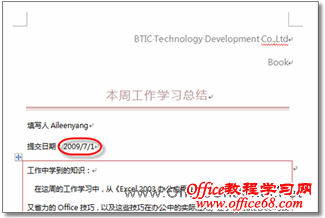 图2 已插入日期的文档 方法2:使用快捷键插入可更新的日期信息 将光标定位至待插入日期的位置,然后按【Alt】+【Shift】+【D】组合键,此时当前系统日期即可插入到指定位置,如图3所示。该日期还可以动态更新,选中插入的日期,然后按【F9】键即可完成更新操作。 如果用户希望将时间信息插入到文档中,则可以直接按【Alt】+【Shift】+【T】组合键,此时文档中就会显示当前的系统时间。 借助快捷键完全消除了手动操作的繁琐,同时也避免了潜在的错误。