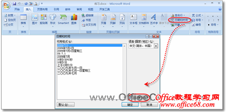 图1 打开“时间和日期”对话框 日期格式设置完成以后,单击【确定】按钮,此时当前系统日期已经插入到文档中,如图2所示。