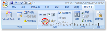 图7 在文档中插入控件 此时,“日期选取器”控件已经插入到文档中,用户可以在控件中单击【今日】按钮,即可显示当前系统日期,也可以选取任何日期,如图8所示。
