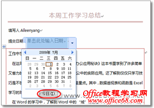 图8 在控件中选择日期 方法5:一键式插入 在文档中输入当前系统日期的年份,Word会自动提醒用户按【Enter】键输入完整的日期,如图9所示。