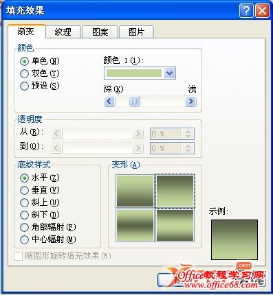 5、选择“填充效果”,我们可以设置颜色的渐变等效果;