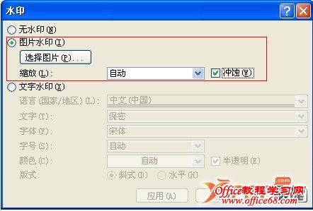 2、选择图片水印,点击选择图片,设置本地图片为水印;