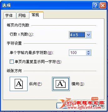 9、书法—选项—常规,设置字帖的一些常规选项,如果您要制作的是一个硬笔字体,可以在每页内行列数设置大一点的数值,这样,格子就会变小,反之,如果您要制作的是软笔字帖,则设置小一点的数值。