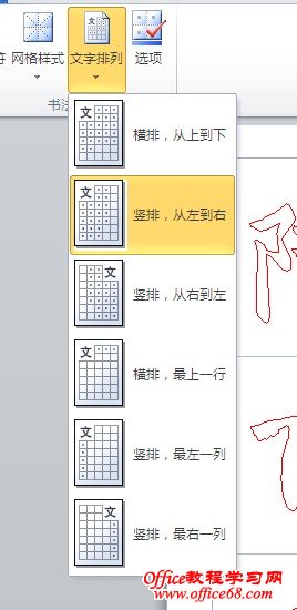 6、书法选项卡文字排列,可以选择文字的排列方式;