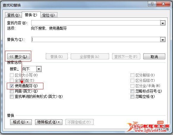 2、单击“更多”按钮,在使用通配符前面选中;