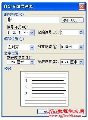 Word有一项功能是自动编号,可是我们会发现,在编号的后面,会有小数点和空格,那么,怎样去掉Word文档中自动编号后面的小数点和空格呢?为您解答: 去掉自动编号后面的小数点 方法一: 1、选中自动编号,单击右键选择项目符号和编号,打开对话框后,点击编号选项卡,选择一种编号样式; ![]() 2、点击右下角的自定义,进入自定义对话框,去掉圆点,确定就可以了。 ![]() 方法二: 按照之前教大家的方法,取消自动编号,然后手动为文档编号,还可以避免自动编号部分排版时有缩进的麻烦。 去掉自动编号后面的空格 方法一: 如果每个编号开头不要空两个字,在“段落”对话框中,将“特殊格式”下拉列表框中选择“无”即可(其它设置不变)。 ![]() 方法二: 如果每个编号的第二行空两个字,在“段落”对话框中,将“特殊格式”下拉列表框中选择“悬挂缩进”,度量值值里输入“2字符”。(其它设置不变)。再打开“格式”菜单,选择“制表位”,单击“全部清除”按钮(此时文本也要处于选中状态)。 |