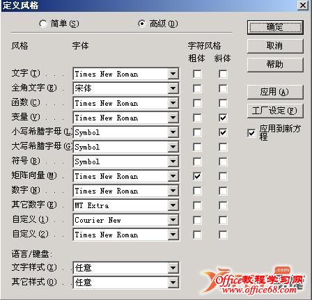 解决方法: 1、最简单的方法 2、下载symbol.ttf字体文件 ![]() 3、回到Word中 选择:样式\定义,将文字、函数、变量、矩阵向量、数字都选择times new roman ;大小写希腊字母、符合都选symbol就可以了。 4、设置完成成关闭Word,重新打开,看是否正常显示了。 symbol.ttf 字体文件下载: http://ishare.iask.sina.com.cn/f/8236925.html 特别提示: 如Word中显示乱码,公式编辑器却是正确显示的公式,退出公式编辑器后又变成了乱码,这时您只需要在公式编辑器中单击“文件——更新 文档...”将公式字体更新到文档中,退出后就可以看到公式已经正常显示了。 |