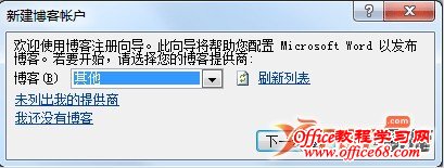 2、如果此前没有为Word添加博客帐户,需要添加一个博客账户;
