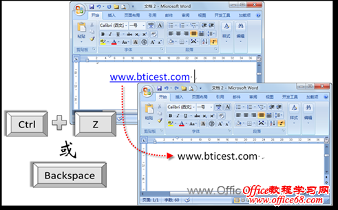 Word文档中输入文本内容,并自动转换为超链接域时,随即按【Backspace】键,或者按【Ctrl+Z】组合键即可取消该超链接,如图2所示。