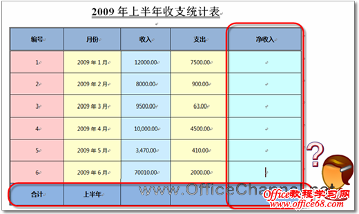 例如,财务人员需要对上半年每个月中的收支情况进行统计,计算“收入”、“支出”列的总和,并计算每个月的净收入(即“收入”列与“支出”列之差,如图1所示),此时可以按照如下步骤进行操作。
