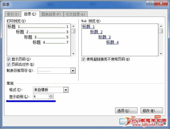 一般情况下,我们设置Word文档的目录,如果是一般的论文报告之类的,只要两层目录就够了,可是,如果是比较复杂的情况,我们就需要在Word中设置多级目录了。那么,如何在Word中设置多级目录呢? 1、word2003 执行操作:【插入】【索引】【索引和目录】【目录页】【显示级别】,然后输入目录级别即可。 2、word2007/2010 执行操作:【引用】【目录】【插入目录】,打开目录设置窗口,在显示级别处,输入级别数即可。 ![]() |