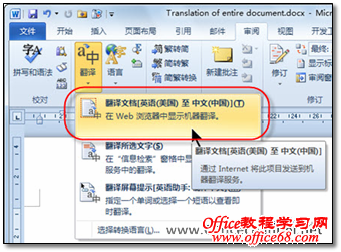 Word 2010中提供的“翻译文档”功能翻译整篇文档