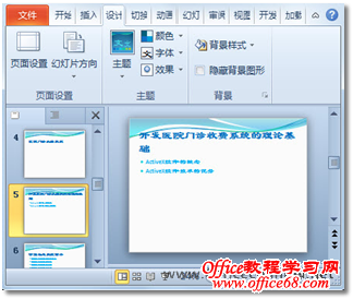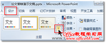 图2 应用主题样式 设置演示文稿的主题 在演示文稿中,通过“设计”选项卡中的“主题”功能,设置相同的主题样式。 1. 切换到演示文稿的“设计”选项卡,在“主题”选项组中单击【其他】按钮,如图3所示。