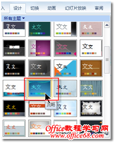 图3 打开主题库 2. 在随即打开的“主题样式库”中选择与Word中相同的主题,即“流畅”主题,如图4所示。