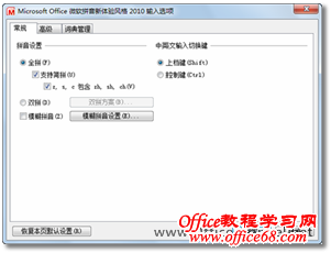 图1 输入选项 此时,系统将会打开“Microsoft Office微软拼音新体验风格2010输入选项”对话框,如图2所示。