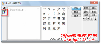 图2 输入板 3. 在“输入板 - 手写识别”对话框的左侧区域中按住鼠标左键不放进行拖动,以输入汉字笔画。随着您的输入,系统将自动识别输入的字形,并在右侧列表框中实时显示与该字形相似的字,如图3所示。