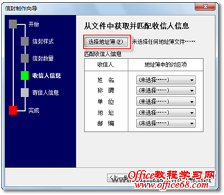图4 生成信封的方式和数量 5. 在“从文件中获取并匹配收信人信息”页面中单击【选择地址簿】按钮,如图5所示。