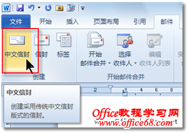 给客户发送纸质信件,自然要在信封上填写客户的地址、名称、邮编等信息。几百名客户,就意味着几百个信封,难道小黄就要在信封上书写几百个地址、几百个名称等信息吗?答案是否定的,同样借助Word 2010中强大的“邮件合并”功能,可以轻松批量打印信封。 在Word 2010提供的“邮件合并”功能中,通过“中文信封制作向导”,小黄可以快速制作符合自己要求的信封。 1. 在Word 2010中,切换到“邮件”选项卡,在“新建”选项组中单击【中文信封】按钮,如图1所示。