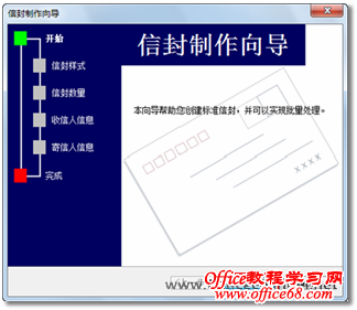 图1 中文信封 2. 在随即打开的“信封制作向导”对话框中,直接单击【下一步】按钮,如图2所示。
