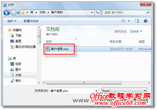 图6 地址簿的文件类型 7. 浏览选择记录客户信息的Excel表格(前提是,已将Outlook中的客户联系人导出到了该表格中,且将“经理”和“总经理”级别的客户信息单独放置在了工作簿的左数第1张工作表中),单击【打开】按钮,如图7所示。