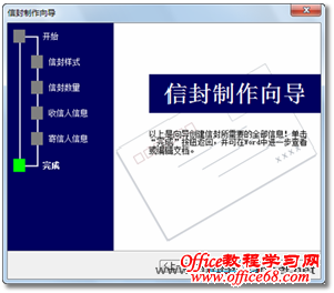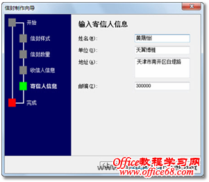 图10 输入寄信人信息 11. 在向导的最后一个页面中,单击【完成】按钮,如图11所示。