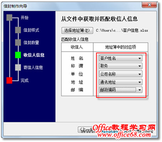 9. 执行“步骤8”类似操作,将称谓、单位等其他选项与Excel表格中的对应项相匹配,再继续单击【下一步】按钮,如图9所示。