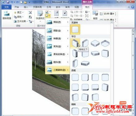 Word 2010拥有强大的图片处理效果,不仅可以调整图片的亮度和对比度、设置图片的阴影效果,还可以设置图片的三位旋转效果,让图片变立体。
