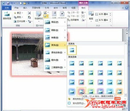 有的时候,我们需要为Word 2010文档中的图片设置相框,要是对相框的要求不高的话,我们可以通过设置图片发光效果的方法,来让图片周围有一圈颜色,既可以实现相框的效果,又可以起到美化图片的作用。