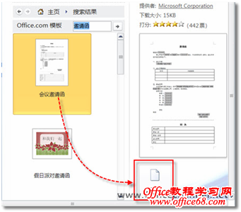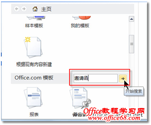 Office.com上提供了丰富的免费模板,小黄通过Word 2010后台视图中的模板搜索功能,可以快速地搜索到合适邀请函模板。