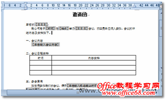 2. 模板下载完毕后,系统会基于该模板自动创建一个新文档。此文档中已经存在了邀请函应有的大部分通用内容,并且格式简单明了,如4所示。