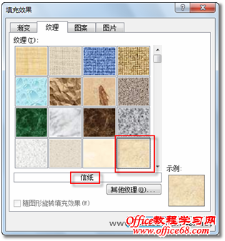 3. 在“纹理”区域选择合适的填充效果,如,选择“信纸”纹理,如9所示。