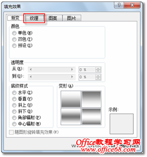 2. 在随即打开的“填充效果”对话框中,单击“纹理”选项卡,如8所示。
