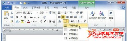 本来使用Word 2010设置页眉页脚后是有一条横线的,将其删除后,又需要加回来。究竟该如何为Word 2010页眉加横线呢? 操作方法: 1、打开Word2010,双击页眉,进入编辑状态。 2、选中页眉所在的段落,单击【开始】选项卡。 3、单击“段落”分组中的边框线下拉三角按钮。 4、中选择【下框线】选项即可。 ![]() |