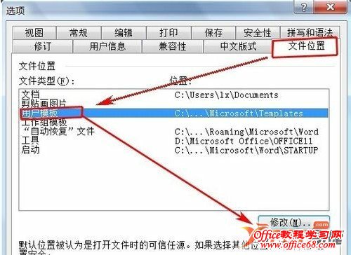 有的时候,如果Word出现问题,就会强行关闭并以安全模式启动,Word在安全模式下,有些操作是无法进行的,所以我们就要取消Word的安全模式。 操作方法一: 1、打开Word文档。 2、Word2010/2007执行操作:【文件/Office】【选择】;Word2003执行操作【工具】【选项】。 3、单击【文件位置】选项卡,选择【用户模板】,单击【修改】。 ![]() 4、选中Normal.dot文件,删除,单击【确定】。 解决方法二: 1、【开始】【我的电脑】,按下Ctrl+F快捷键。 2、在查找框中输入Normal.dot,找到后删除。 |