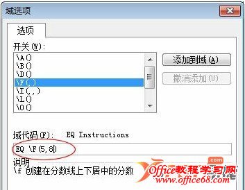 记得前几年还不太熟悉Word操作的时候,每次要在Word中打分数,都觉得非常的头疼,有时候甚至干脆把一个分数分成三行来打,非常的不专业。后来学习了如何在word中打分数,不用借助任何工具插件,非常简单。 首先要说明的是,这并不是在Word中打分数的唯一方法,通过使用Word公式编辑器也可以实现在Word中打分数,不过,相比于要单独安装公式编辑器,还是直接用Word来打分数更方便些。 1、【插入】【域】,打开域窗口,“域名”下面找到“Eq”,然后单击下面的【域代码】。 ![]() 2、单击【选项】按钮,在域选项下面的【开关】中,找到“\F(,)”,双击。 ![]() 3、方框中的“\F(,)”,逗号前面输入分子,逗号后面输入分母。 ![]() 4、单击【确定】。 知识扩展: 1、什么是Word的“域”? Word域可以实现许多复杂的工作,自动编页码、图表的题注、脚注、尾注的号码等,都可以通过Word的域来快速完成。 2、怎么禁止域的自动更新? 选中要锁定的域,按“Ctrl+F11”组合键即可锁定该域,从而防止该域被更新(只对具有更新特性的域有效,如时间域、页码域等)。当需要更新锁定的域时,按“Ctrl+ Shift+F11”组合键即可解除对域的锁定。 3、word如何取消域? 选择要消域的部分,在菜单中单击格式和样式,然后在右侧弹出的格式和样式任务窗格中单击“清除格式”。 |