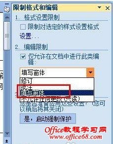 有些内容的文档,我们是不希望被他人复制和修改的,这是我们可以通过设置,实现Word文档”只读“效果,也就是说,别人可以看,但是不能复制文档的内容,也不可以修改。 设置方法: (注:该操作在Word 2010版本下进行,Word2003和2007版本的操作方法基本相同。) 1、打开Word文档,单击【审阅】【保护文档】。 2、在对话框中勾选仅允许在文档中进行此类编辑,在下拉菜单中选择填写窗体。 ![]() 3、单击【是,启动强制保护】,在弹出的对话框中输入密码,然后点击【确定】。 ![]() |
