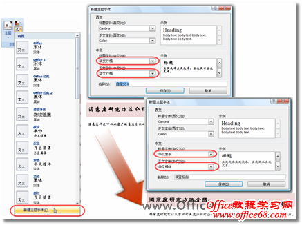 图2 将主题应用于文档 (4)如果主题字体不能满足我们的需要,我们还可以自定义主题字体。单击“主题”组上的【主题字体】按钮( (5)在“中文”区域中,将“标题字体(中文)”和“正文字体(中文)”下拉列表中的字体分别改为“华文隶书”和“华文楷体”,单击【保存】按钮。此时,我们可以看到文档主题字体变化,如图3所示。