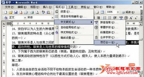 2、在菜单栏依次选择“格式”→“中文版式”→“双行合一”菜单命令。