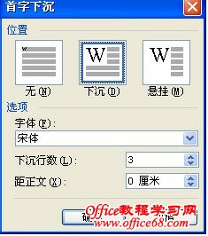 Word 2007/2010中:在插入选项卡中单击首字下沉,然后打开首字下沉设置对话框就可以了。