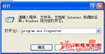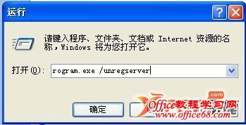 2、单击 开始,单击 运行,在 打开 框中键入 program.exe /unregserver,然后按 ENTER 键。