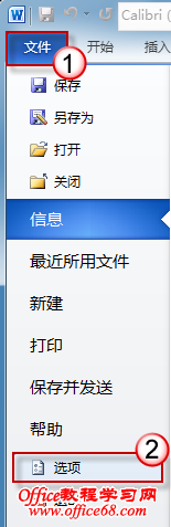 单击“文件-选项”。(对于 Word 2007,按 Office 按钮,单击“Word 选项” )