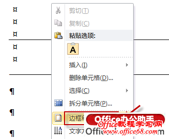 将鼠标停放在表格内,右击,选择“边框和底纹”。
