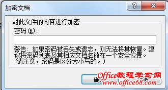 在弹出的“加密文档”窗口中输入密码,如下图所示。 ![]() 在下次启动该文档时就会出现下图中的现象,只有输入密码后才能正常打开。
