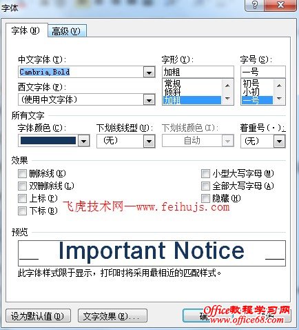 接着在“字体”对话框中单击“字体颜色”下三角按钮,在列表中选择符合我们要求的字体颜色,并单击“确定”按钮。