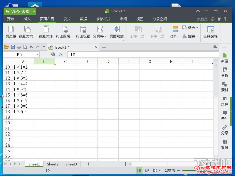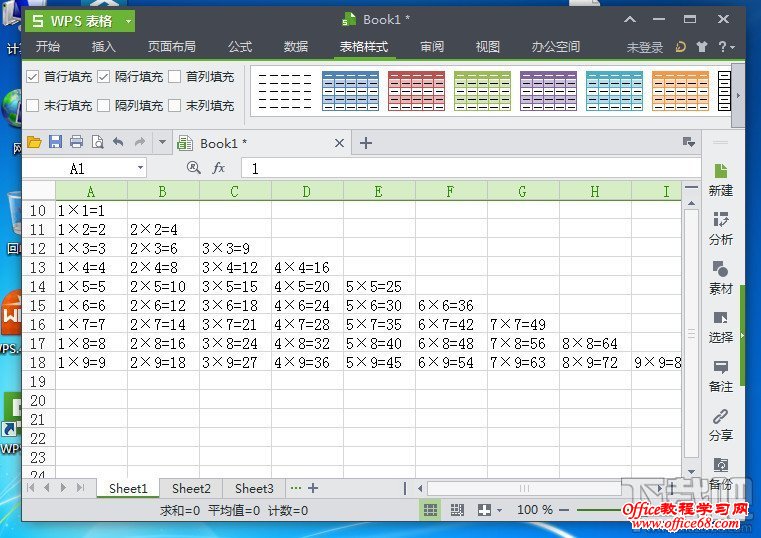 这样,一个用wps做出来的九九乘法表就出来了. |