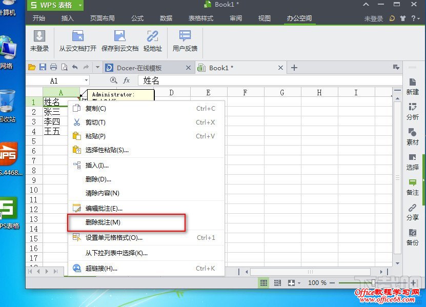 5:取消批注,很简单,选择框右击”取消批注“就行了