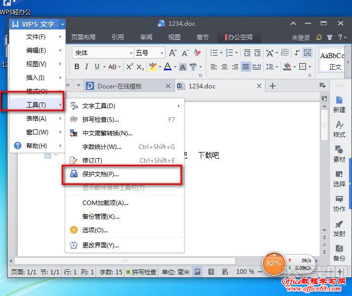 WPS文件怎么加密保护,在公司办公的时候,经常需要传输文档给对方,对方可能无意的改动了一些地方,传输一下重要的资料。现在下面演示一个加密文件,跟一个保护文件不被修改教程。