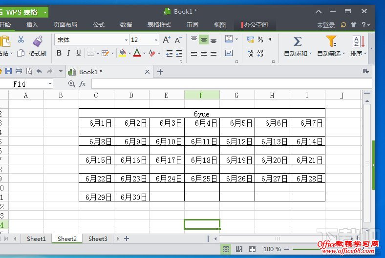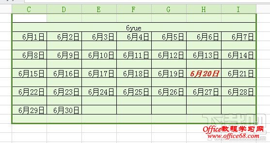 7:最终效果如图所示。比如今天是6月20日,这样 是6月20日 就显示为红色了。