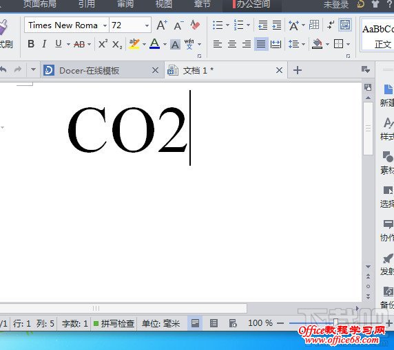 1:比如我们要输入二氧化碳这个符号,现在WPS文字上输入CO2。