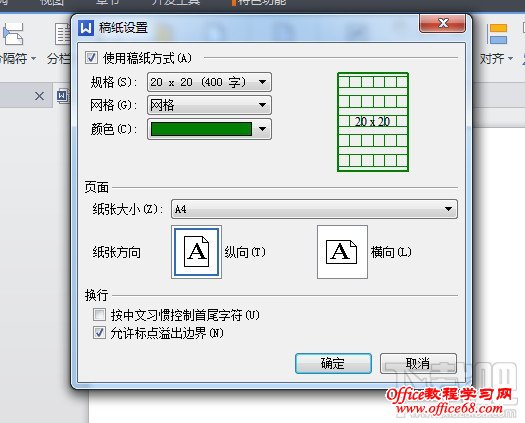 2:打勾“使用稿纸方式”,就会显示出稿子格式,可以设置大小,颜色。